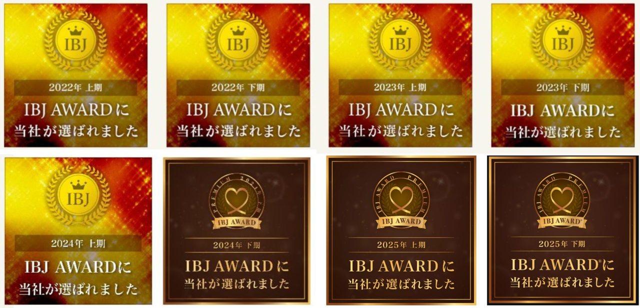 BJ AWARDは、IBJに加盟する約4,541社の中から上位13.3%、特に顕著な実績を残した結婚相談所に贈られます。