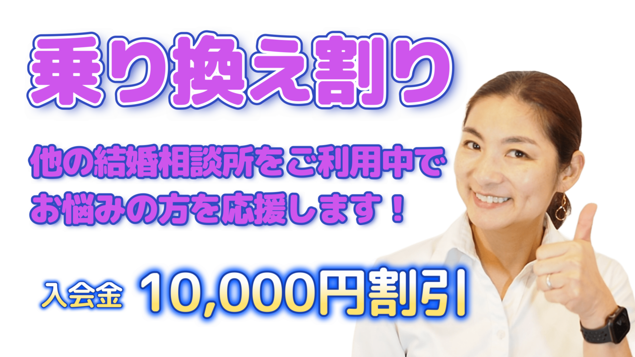 現在、他の結婚相談所(マッチングアプリは除く)でご活動されている方で、「婚活がなかなか前に進まない」「カウンセラーに相談できない」などのお悩み中の方を応援します!